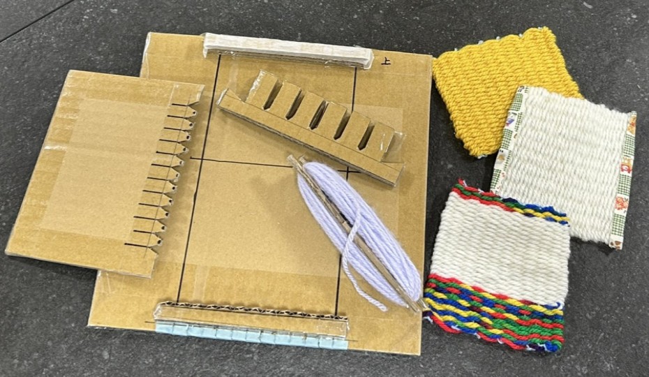 「コースター」と聞くとかぎ針等で編んで作成しているイメージがあります(筆者だけですか…?)が、普段編み物をしない人からするとかぎ針で編むのはハードルが高いのではないかと考え、何か別の方法はないかと検討し、機織りでコースターを作ることにしました。