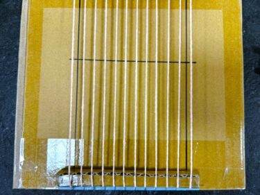 織る要になるタテ糸をダンボール織機にセットしていきます。