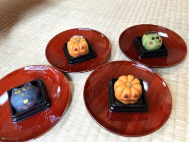 今回のお菓子は某お菓子屋さんのハロウィン仕様の創作和菓子でした!とっても可愛かったです。