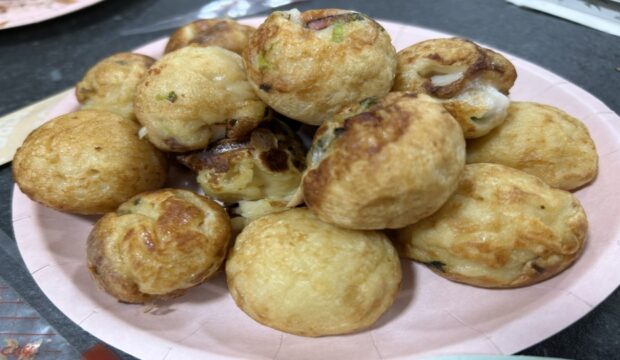 皮が少し余ってしまいましたが、コーン缶とツナをマヨネーズで和えた物を「たね」に代用し、利用者さん6名と職員4名を合わせた計10人分の200個が無事完成しました。その後はホットプレート2台を使って、「熱気がっ!」「あつ~い」などと言いながら200個全て焼き上げました。出来上がった餃子と一緒に白ご飯、わかめスープなどをみんなで美味しくいただきました。
